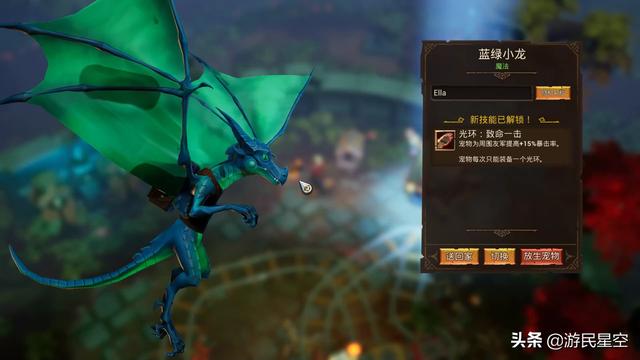和前作一样,《火炬之光3》中我们依然要带着宠物四处冒险,不过这一次,我们不再需要钓鱼喂养宠物来改变其形态,而是要通过战胜地牢Boss以获取宠物奖励,其外形和技能都是随机的,我们可以任选一只携带。宠物仍可携带项圈等装备,并帮助玩家把货物送去据点出售。它们的种类看上去更为丰富,能够满足一些乐于收集的玩家,但对玩法的拓展微乎其微。