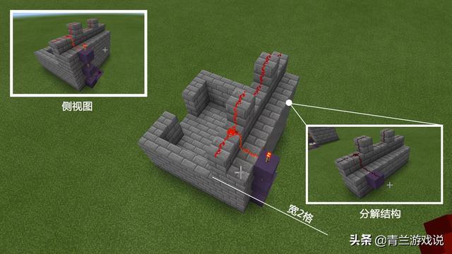 外接的线路并非是与地基在一个水平线上的,这样是为了更好搭建红石线路,但如果玩家们有更好的搭建方式,亦可以采取别的引线方式,但是一定不能在外表留出红石线路。
