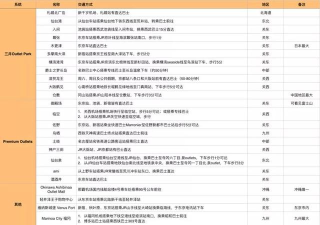 以下是日本各地outlet的整理: