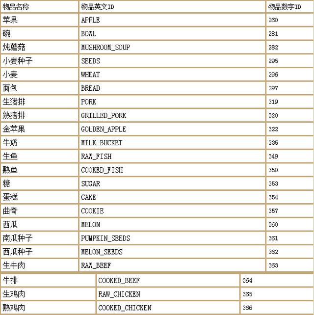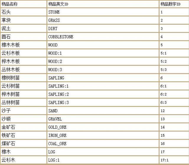 /give 玩家名 物品ID 物品数量 给予玩家物品