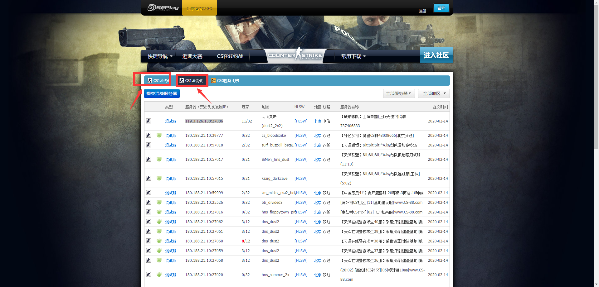 服务器地址百度 CS1.6服务器 自己找,比如索沛、5E约战平台等等。