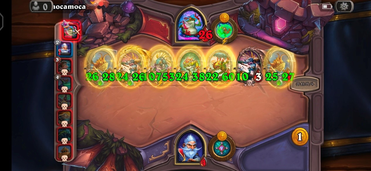 第三个回合的时候有五费,可以升星再拿一个随从,继续将战斗力拉满。第四个回合有六费,其他英雄只能拿两个随从,“米神”可以直接拿三个,按这个进展,在二本的时候场上的随从基本都已经站满了,而其他英雄可能才三四个左右,那么就算团战打得再差也不至于被血入。