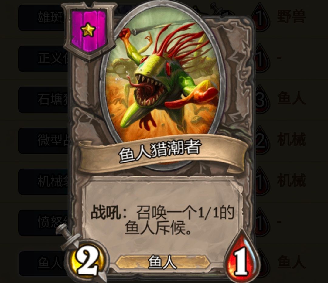 其次,这个版本的节奏主要是在五六本的时候,想要顺利进入前四,就得保持健康的血量升本到五本六本找核心。“米神”的优势就是可以两费拿一个随从,这在前期基本算是无敌的,第一个回合的时候如果能够拿到理财鱼或者雄斑虎,把衍生的小鱼或者小老虎卖掉了还可以再拿一个随从,一本二打一,怎么都不会输。
