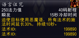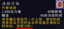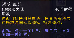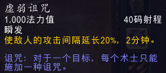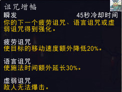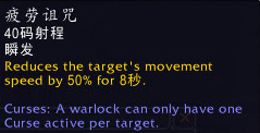 疲劳诅咒:使目标的移动速度降低50%,持续8秒。每个术士只能对单个目标施加一个生效的诅咒。