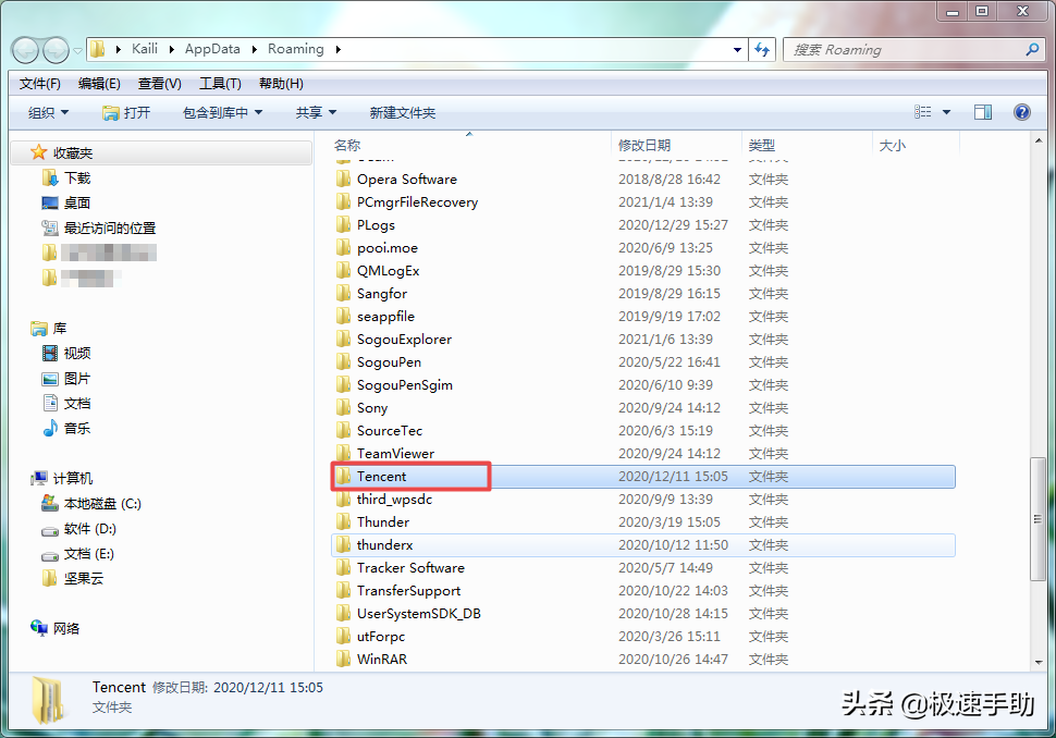 ③介意的可以将【Roaming】文件夹下的【Tencent】文件夹中的【TGP】文件夹删除试试。