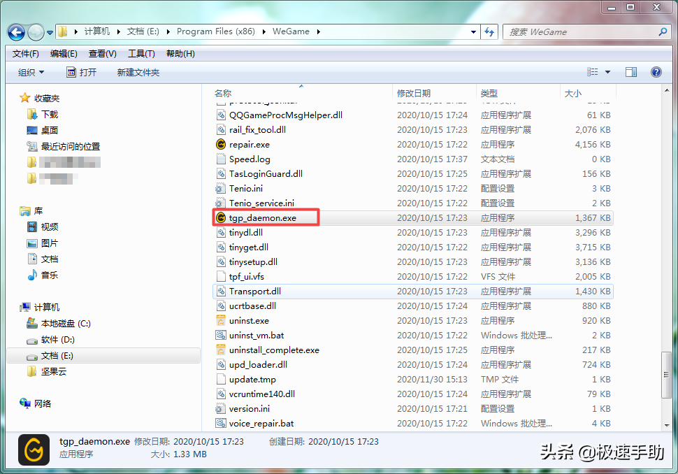 还是打开WeGame软件的安装路径,然后在安装文件夹当中,找到【tgp_daemon】应用程序,然后尝试运行它,也可以解决WeGame闪退的问题。
