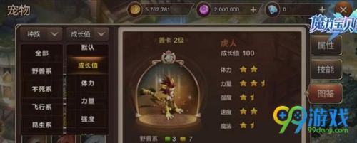 勇者可以在图鉴中看到宠物的成长值,这代表着该种宠物最高的成长值,当勇者们抓取宠物的时候。