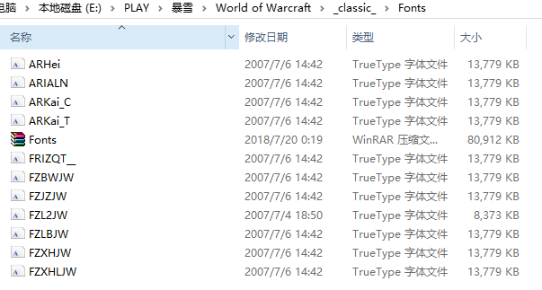 首先把你需要的字体下载到你的电脑里面,随便放在任何地方, 然后在你WOW目录下建立一个新的文件夹:Fonts。如:F:World of Warcraft_classic_Fonts