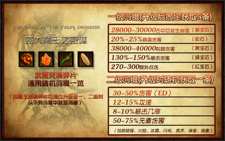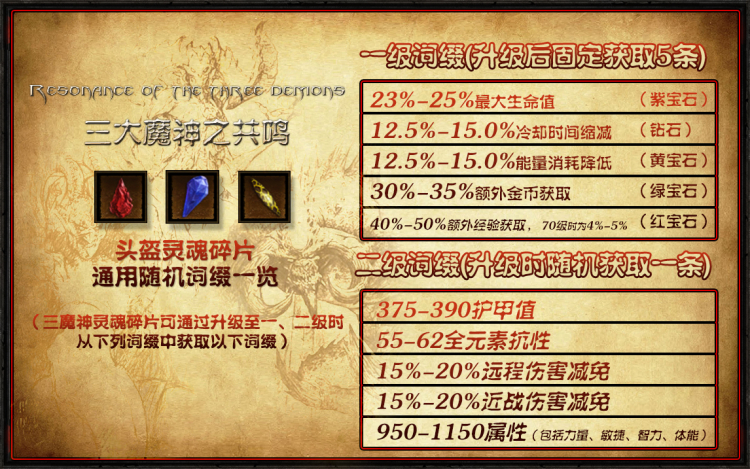 当灵魂碎片升至1级时,将会额外获得所有的宝石特效。2级时则会随机从几个强力效果中选一个。