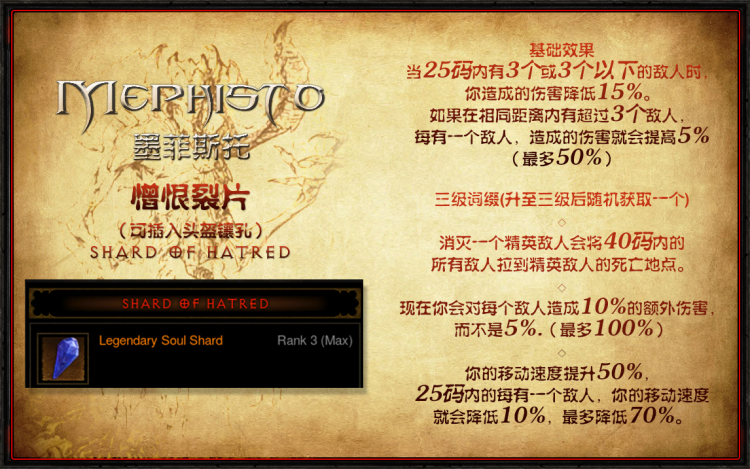 憎恨裂片在25赛季中会是部分职业的选择,和恐惧碎片不同,它的三级威能肯定要选额外增伤,这样对于某些进度难受王战轻松的职业——比如魔法师的手动水果刀和猎魔人的暗影三刀——来说它提供的增伤会是最高的。
