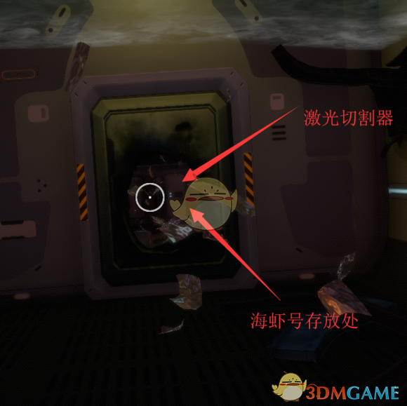 探索完海蛾号,出来门口,正对着的地方就是海虾号存放处,过去,用【激光切割器】切开门。