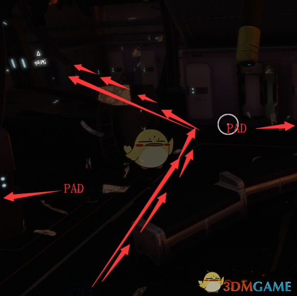进来之后有两个PAD,自己找一下,都在柜子里面发光。然后顺着路线直走然后左拐。