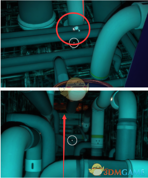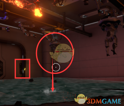 重点说一下第四个【实验室】的房间。我们返回海虾号存放点的位置,看到上面吊着的两个海虾号。在靠近门的那个海虾号进入水下。
