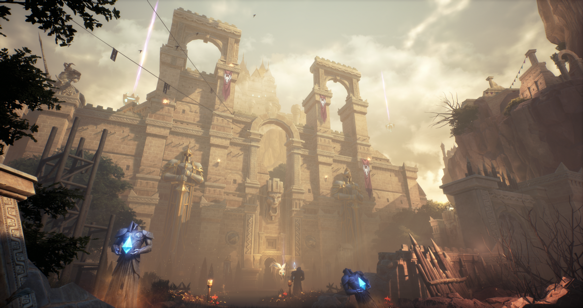 在曾经那片土地上中体验更加绚丽的魔幻场景!例如在天空之城建筑中古风设计,其上一道光柱冲天,两种风格交织体会到了别样的感受,游戏中玩家“砍”累了就可以飞到天上欣赏3D画面下带来的美丽风景与宏伟建筑,这能让我们有更加沉浸式的游戏体验。