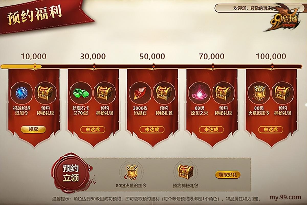活动期间,预约成功即可领取1份预约惊喜礼盒,礼包内含1份预约神秘礼包[赠](6月29日维护后可开启)、1份80级火墓追加令[赠]。预约人数达到各档目标,还会解锁更多好礼!