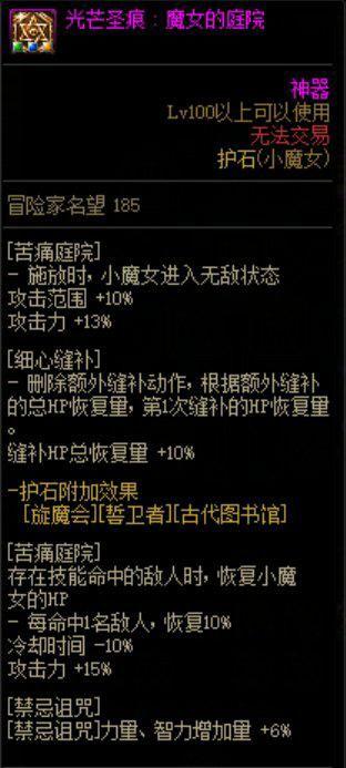 因为这三护石提供的力智增加量最多,故优先选择,且护石 魔女的庭院 改变了细心缝补的 缝补动作,使得小回血得到完美的优化。符文选择:打孔上最优选择蓝绿黄,处于过度时期的紫色或者红色孔可随意镶嵌以提升名望方便进团(注意红色尽量别选择蔷薇藤鞭、苦痛庭院、细心缝补、爱之急救)