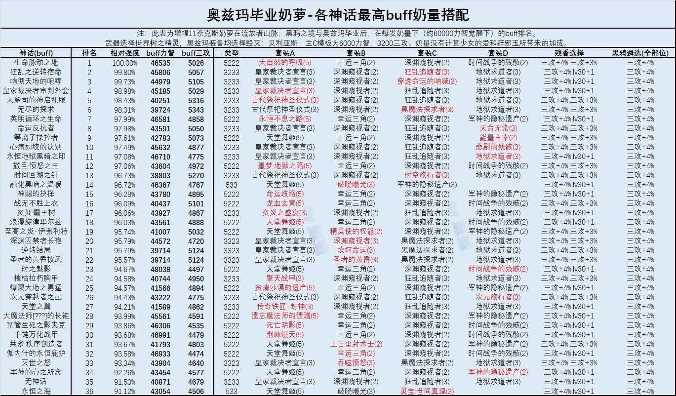 )有神话条件下可根据下图进行神话最优搭配: