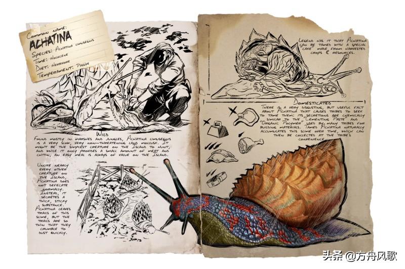 蜗牛主要在沼泽和丛林中发现,是一种非常缓慢,非常无威胁的陆地软体动物。它可能是岛上最简单的狩猎动物,虽然它只提供少量的肉类和甲壳素,但与孤岛几乎所有其他生物不同,蜗牛不会正常排便。相反,它会分泌粘稠的物质。蜗牛留下了这种黏液的痕迹,但是痕迹太细了,以至于它们很快就崩溃了。