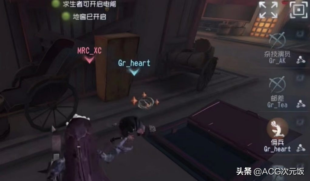 第三局上半局,被Gr求生者天秀的MRC_XC誓要“一雪前耻”,在军工厂这张地图中拿出了兼具机动性、守椅以及控制能力的“使徒”。正当所有人以为开局会是正常的均势节奏之时,“使徒”遇到第一个求生者咒术师便假意摧毁木板实则转身出击,直接打出恐惧震慑将正在跨越木板的咒术师击倒。