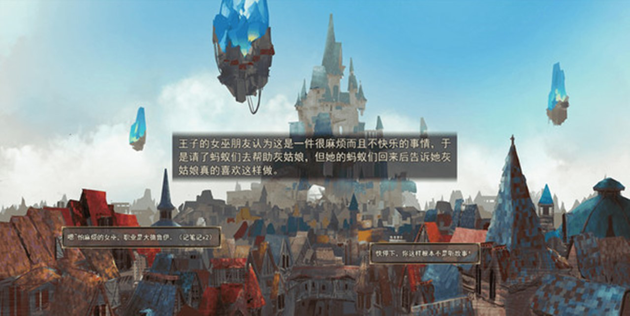 这是游戏中的第一个故事,另一个故事大家可以去游戏体验,这个故事看上去无厘头没有根据,但是在故事结束的时候却会有一种怅然若失的感觉。我们习惯了童话的中主角是王子的公主,就算是不公主也要是一个美丽善良的女孩,就像灰姑娘一样,而不是一个代表邪恶的女巫。这就说到了游戏的名字《女巫与六便士》,六便士就像是灰姑娘,一个美丽又多愁善感的女孩,标准的女主角配置,所以王子作为男主角就不顾一切去追求她,可是等他回头看到了女巫,才看到了人生的“月亮”。大家都以为正确的事并不一定是正确的,常规需要打破,王子不一定要和公主在一起,和女巫也可以。