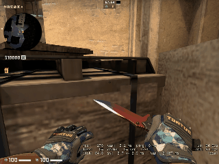 而对于跳蹲没有办法跳上的箱子,比如荒漠迷城的死点箱、炙热沙城ⅡX-BOX侧面的小凸起。大跳则可以完美做到。和跳蹲很相似,大跳也需要用到蹲键和跳键,但不同的是大跳需要玩家在起跳前先按住下蹲键,在几乎蹲到一半时按下跳跃键即可,在下图中我们可以很明显看到游戏人物先做了一个下蹲的动作然后才完成的起跳。如果不能很好的掌握大跳,可以在控制台中分三次输入即可: