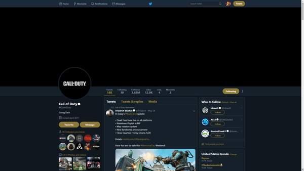《使命召唤》官方推特换上了纯黑背景的游戏Logo,而签名也换成了“Going Dark”,连背景头图都换成了一片漆黑。