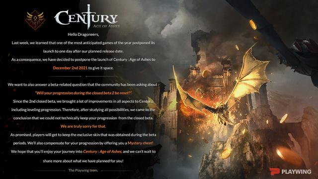 近日开发商Playwin宣布,免费多人龙战游戏《世纪:灰烬纪元》原定于2021年11月18日发布,现推迟至2021年12月2日上线。这是为了避开《战地2042》的锋芒。