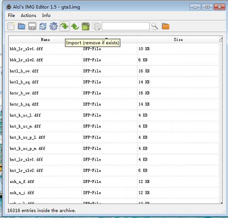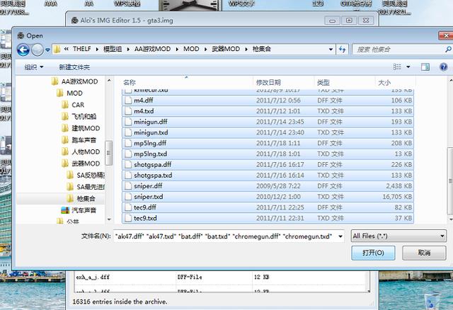 2.下面是更为实用的IMG批量导入工具,对于有很多MOD要代替,比如武器,地图,有40多对.dff和.txd文件,这是一个个弄就太慢了,所以出现了这个批量导入工具:
