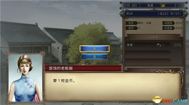 你的初始地在杭州,你可以点击主城界面的各个图标按钮,查看游戏的系统内容。
