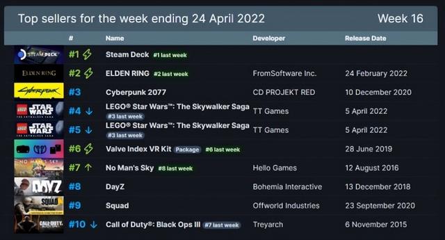 Steam周销量榜:V社自家掌机二连冠