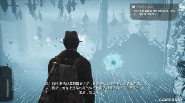 这是一款第三人称,带有探索解谜元素的开放世界克苏鲁神话游戏。里德身为一名侦探,拥有思维之眼的能力,可用于高亮标记提示搜寻线索目标和开启机关。他还有回溯推演的能力,用于重构犯罪现场。