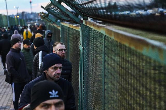 当地时间2022年2月25日,波兰梅迪卡,大批乌克兰难民从边境地带涌入波兰。