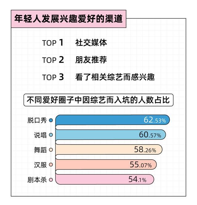 从启蒙,到深耕,年轻人的兴趣圈在不断迭代更新。永远追求新鲜感的年轻人,能在不同的爱好圈中汲取精神力量。值得欣喜的是,近几年引领潮流消费趋势的宝藏综艺节目也层出不叠,在内容消费领域,戳中年轻人的内心,让很多原本小众的兴趣圈子也能注入新鲜血液,不断壮大。