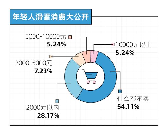 滑雪之所以被称为富人运动,还是因为太烧钱了。在投入成本上,滑雪似乎是一项“上不封顶,下不设限”的运动。调查显示,大部分萌新还是会选择租赁雪具,真金白银置办装备的年轻人不到一半。而消费10000元以上的人民币玩家占比5.24%。