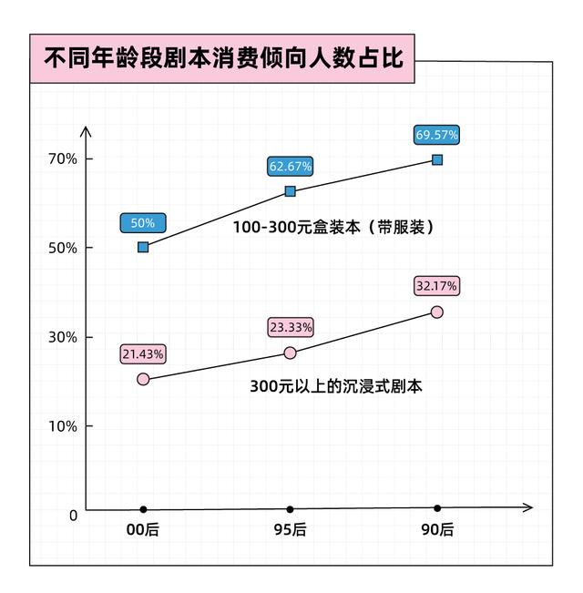 有了经济实力后,游戏体验也是少不得。随着年龄增长,有消费能力的年轻人在剧本杀上的花销提高,更倾向于沉浸式剧本体验。