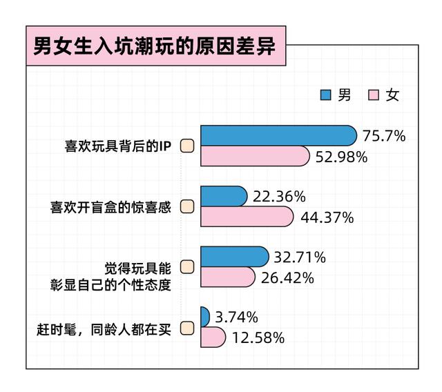 我们还发现,男女生入坑潮玩的原因成分也有所区别。