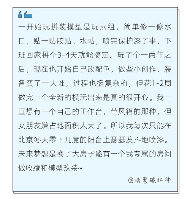 发展一项爱好,就像谈一段恋爱一样,因为热爱,而朝气蓬勃。在找到想让你安定下来的人之前,不断尝试,总能找到一款让你愿意全身心投入的爱好。