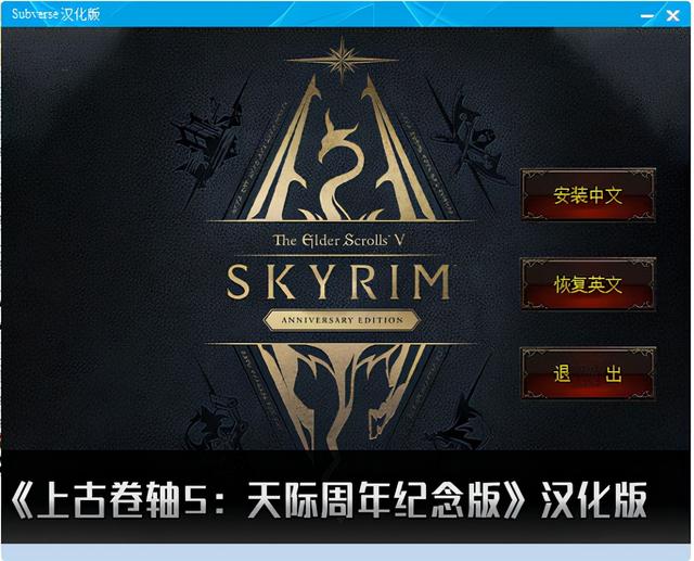 2、将上古5周年纪念版汉化补丁.exe将其复制到游戏目录下,打开下载的汉化包,选择安装中文开始进行汉化;