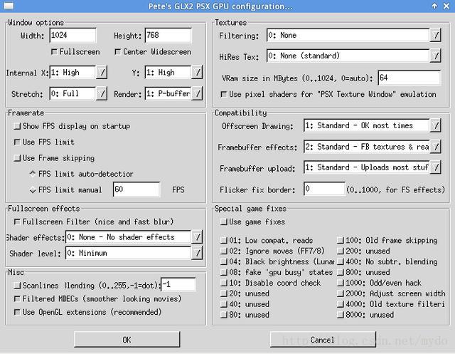要设置的地方还是比较多的,不过关键也就分辨率,全屏,限制frame几个地方,其他统统忽略不计,玩过windows下ePSxe的童鞋都知道,和windowx下设置差不多.