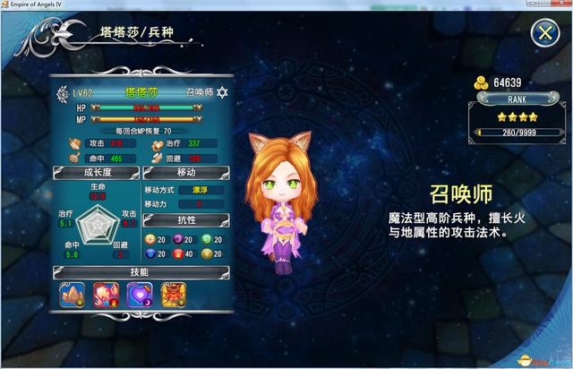 技能方面地刺除非补刀不然不建议用脆身板冲上去说不定S就没了。80MP的大火球应该是三星最实用的伤害技能了配合补刀一般必死一个小怪。蓄能2第一回合给自己加个攻击,后面用到的机会少。大招有个很奇葩的范围判定,比1+4要好,而且比较安全,但是移动力不够支持的情况下很蛋疼。