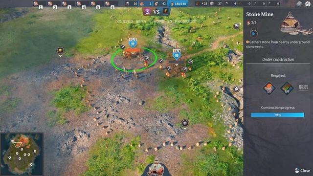 对于没有接触过“工人物语”系列的玩家而言,新《工人物语》的资源系统可能有些难以理解——需要找到特定的资源后,派遣工程师单位建造对应的建筑后才能采集资源。比如我们需要铁矿,就需要让工程师来到可能存在矿藏的地面上探索,直到探测到有铁矿资源的格子才能建立采矿场。在聚落区域外无法建造建筑,玩家需要命令工程师一格一格地拓宽聚落的区域范围,直到矿藏部分被完全收进建造区域内才能开始采集。