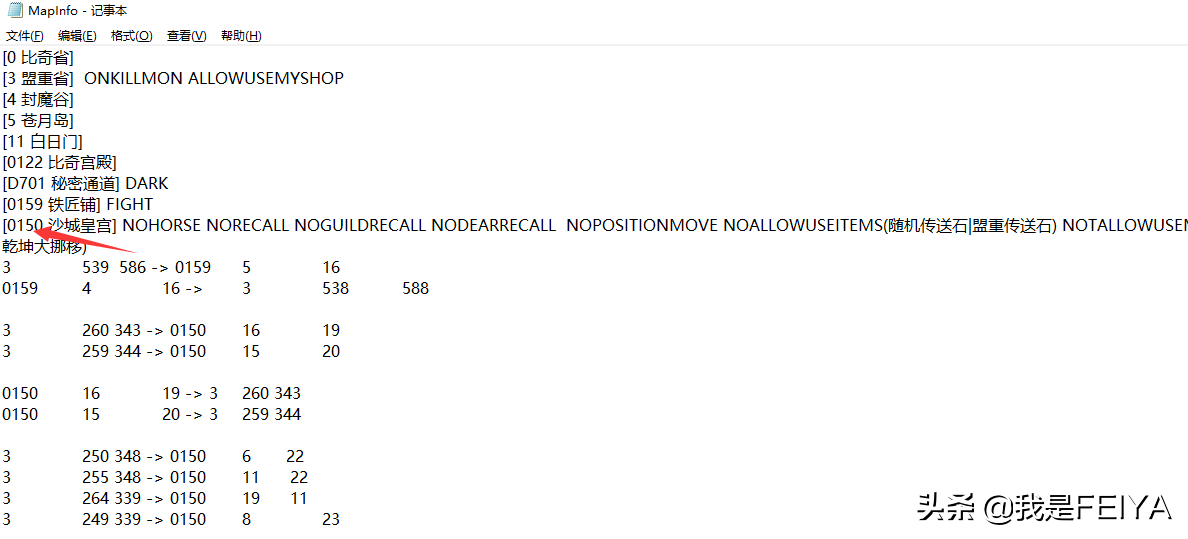 每个版本的地图号都是不同的,打开路径:D:MirserverMir200Envir,找到MapInfo.txt,打开文档,搜索地图名字,例如我要去皇宫,地图号是0150 ,在聊天框输入@f 0150即可直接进入皇宫,是不是很方便
