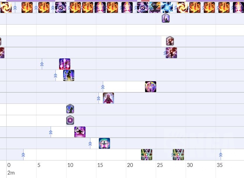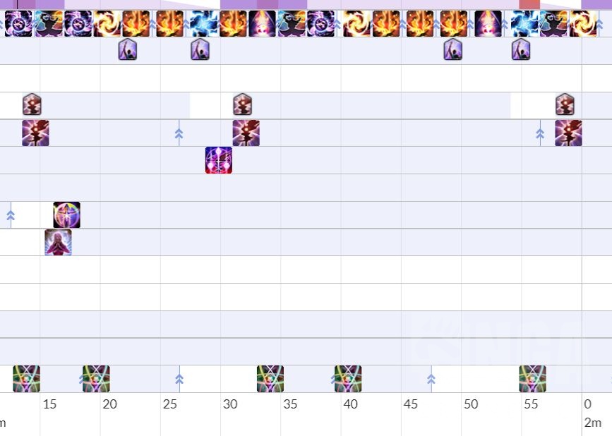 5.因为2.42gcd是每次120s多出将近1.5s,而跳蓝3s一跳,所以2min的双星灵要么选择多打个雷云,要么在前面的长循环用激情触发火苗,要不还挺尴尬的,但是4min就又对齐了,而且激情因为提前开和2层充能,本来就会多出来,不用白不用,所以很推荐把多出来的激情交在这里。2.41gcd也是同理。