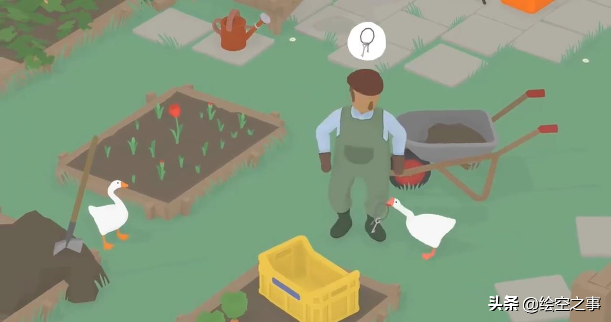 这款游戏也叫《大鹅模拟器》,因为在游戏中我们需要做的就是当一只快乐的大鹅,在乡下的小镇里尽情捣蛋,用洒水器弄湿农夫,叼走别人的东西,吓哭小男孩,当鹅静静地用它那小眼睛盯着你的时候,它一定有着不为人知的坏心思,扮演一只鹅就是最纯粹最简单的快乐。
