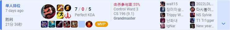 这是来自韩服王者分段的几局排位赛,这名大神玩家在近期使用挺进+排眼刀玩法的男枪频繁收获MVP。而传统的渴血玩法的男枪在12.9版本的表现并不突出,完全没有挺进系男枪的玩法要吃香。所以这名大神玩家在12.9版本玩男枪的思路在王者分段如鱼得水。接下来,小凡将从多个方面给大家详细解读在12.9版本应该如何玩明白这种套路的男枪。