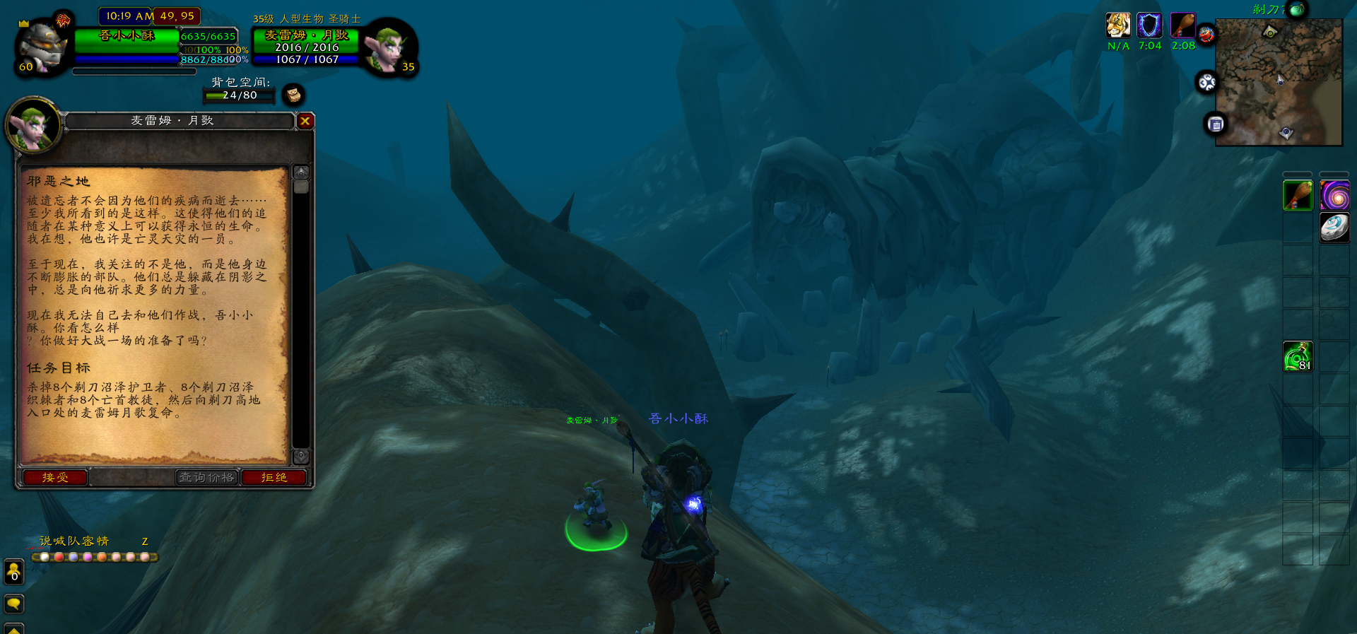 当部落玩家打过剃刀沼泽的时候,最后BOSS会掉一个小卷轴,然后交给幽暗城的大蝙蝠,就可以接到任务了