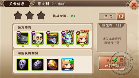 精英难度的副本需要消耗16点体力,并且每天只能够挑战三次!想要将一个英雄升到四星五星,还是需要长时间的碎片积累!