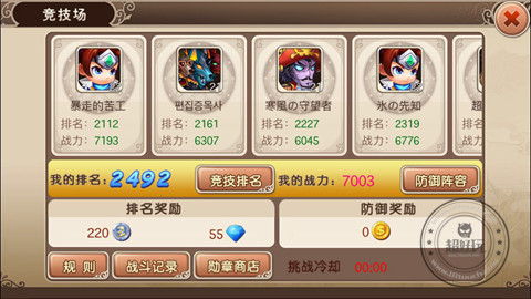 竞技场玩家可以进行争夺排名获得一定的排名奖励,奖励在每天晚上九点发放。在竞技场之中,玩家可以选择目标进行挑战, 建议初期玩家挑选一下战力较低的对手进行挑战,这样能够快速冲排名。