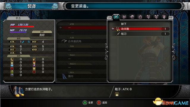CON影响生命值多少,INT影响魔法伤害,LCK则影响暴击和敌人物品的掉落几率。