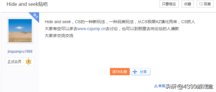 在长达两个小时的检索之后,叔最终发现国内网站最早有记载躲猫猫模式的是这位“jinguangxu1988”用户在2008年7月15日在hideandseek吧发帖说明的。